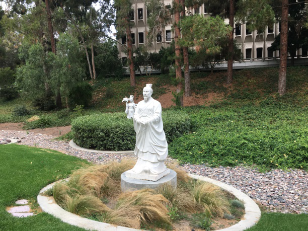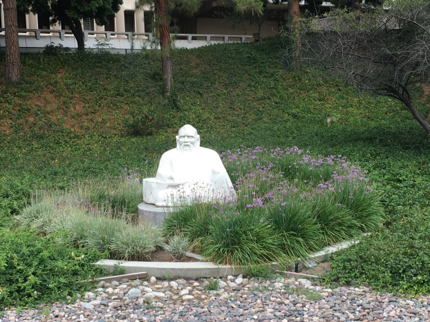 30日,周日,早晨起的很早5:30,之后一周都是这个时间,国内好像很少这个时候起来(尴尬)。天空阴沉、浓云密布,后来庆幸早晨是这样的天气,要不然真的会被晒坏。跟着老师一起行走于校园小道,探索发现一样的审视着校园的一草一物,惊奇的发现了一处中国古代人物的景点。下午则是跟随Joe一起参观了校园,在教室外的阳台上我们吃了一顿晚餐。