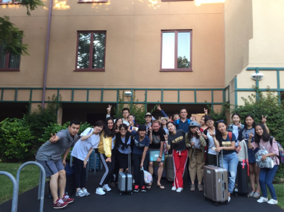 在机场我们等来了上海来的小伙伴,此行26人全部集合完毕。来接我们的UCI校方负责人Joe,是一位非常帅气的小伙子(这里应该加上表情),很热心的给予我们帮助,带领我们登上大巴车赶往UCI。虽然之前使用谷歌街景看过大学的部分区域,但身临其境感受却增加的舒适!校方工作人员为我们办理入住,第一天就要用英语说话,感觉好蹩脚,全程“尬聊”。突然看到华人面孔,觉得有救了(捂脸的表情)。通过聊天得知,陆坤同学来自上海!在这里感谢你提供的帮助!