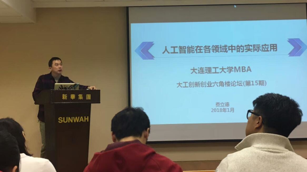 2018年1月7日下午,大工创新创业六角楼论坛首次走进沈阳,邀请人工智能技术专家费立德为我们MBA、MEM校友和学生开讲《人工智能在各领域中的实际应用》讲座。