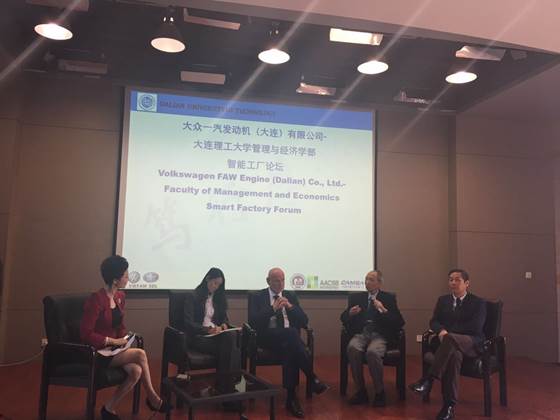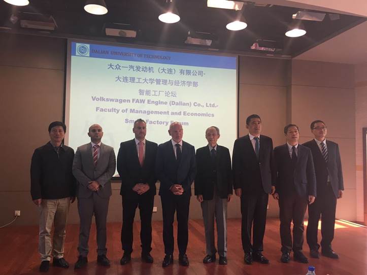当天下午,双方在大连理工大学就此次合作项目开展了题为《智能工厂》的论坛和展示交流活动。大连理工大学管理与经济学部的王众托院士、苏敬勤部长、朱方伟书记及大众一汽发动机(大连)有限公司高德利总经理、张兵副总经理等300余人出席了此次论坛。