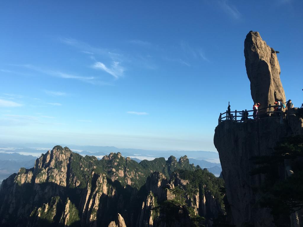 登山的乐趣就在于经历体力流失、身心俱疲之后,终于享受登顶的快乐。抵达光明顶,来不及让山顶的风吹干脸上的汗,黄山的奇松怪石,云海美景,就让我们完全忘记了酸痛和疲惫。拖着半残的身体追逐的阳光流云,在皑皑的薄雾里我们又能谈笑风生了!
