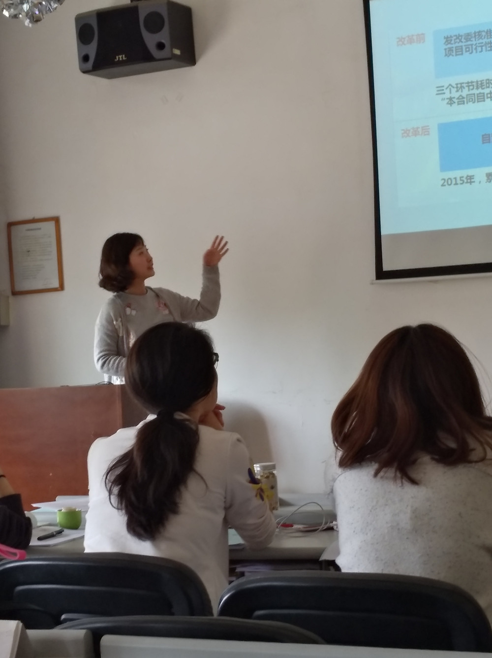2017年5月8日,大工MBA创客无限俱乐部组织了自贸区培训后的分享活动,活动由创客无限俱乐部副会长、2016级MBA魏琳同学在创新创业课上与各位同学进行分享,活动中魏琳同学主要分享了关于大连自贸区培训的相关内容。