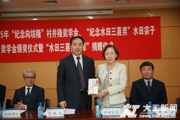 当天上午,学校在伯川图书馆多功能厅举办“纪念向坊隆”村井隆奖学金、“纪念水田三喜男”水田宗子奖学金颁奖仪式暨“水田三喜男文库”捐赠仪式。日本城西大学代表团成员,我校副校长贾振元,研究生院、国际合作与交流处、管理与经济学部、外国语学院等相关人员参加了仪式。仪式由研究生院副院长兼研工处处长王志伟主持。