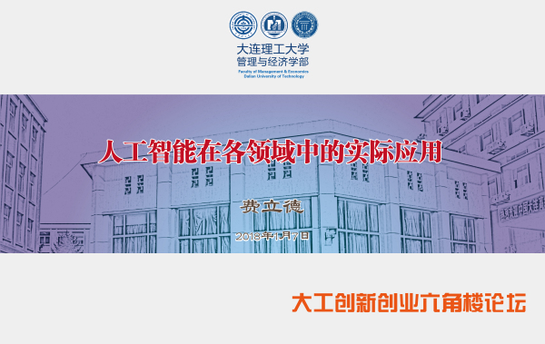 2018年1月7日下午,大工创新创业六角楼论坛首次走进沈阳,邀请人工智能技术专家费立德为我们MBA、MEM校友和学生开讲《人工智能在各领域中的实际应用》讲座。