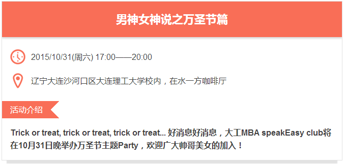 来大工读MBA这么久,你是否苦于繁忙的工作与学业压力而无法结识更多的兄弟姐妹?学英语那么久,你可曾有机会身临其境体验西方节日? No worries, 大工MBA speakEasy club是一个以英语为载体,助MBA校友领略西方文化,享受英语之美,结识更多良师益友的平台。在SpeakEasy club你可以说地道伦敦腔,在这里你可以中英结合,speakEasy club要的是激发你在众人面前说英语的自信与勇气。张开嘴你会发现speak English, so easy!