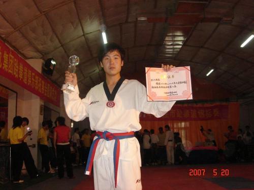 曾蝉联2007、2008年“大连市跆拳道锦标赛”高校组58kg级冠军